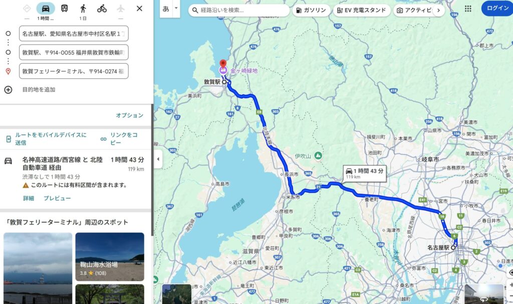 名古屋を出発して敦賀へ