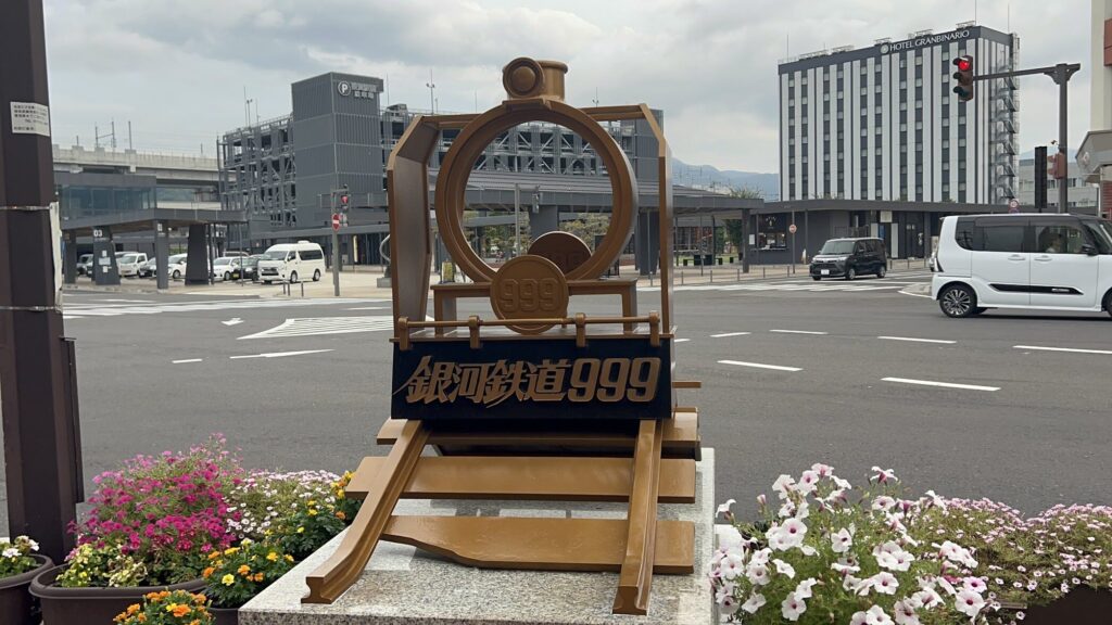 駅前には「シンボルロード」という通りがあり、松本零士さんの銀河鉄道999にちなんだ銅像が並んでます。