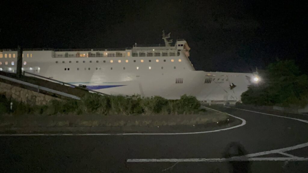フェリーを降りたら真っ暗な道を進まないと町に行けません。