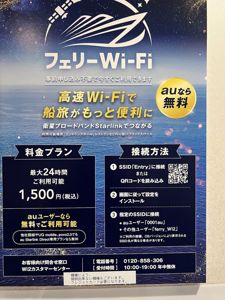 フェリーの中でスターリンクを頼むとWIFIが使えるようになる。