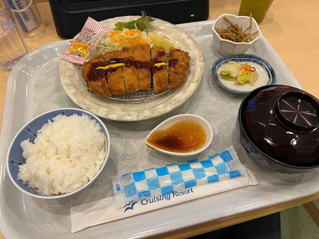 夜はレストランでとんかつ定食食べました!