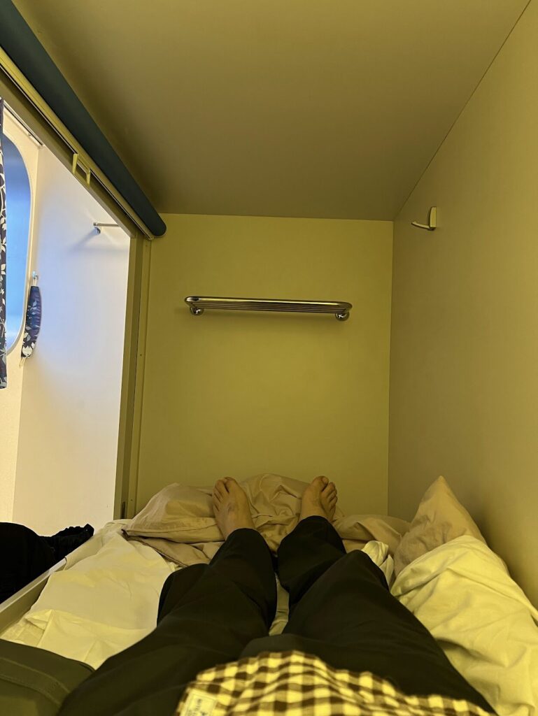 フェリーへの車の乗船は、11時過ぎから始まります。船に乗り込んだらすぐ寝れるように事前にお風呂と食事を済ませておくことをお勧めします。